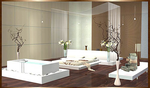 Collection and readme included! The bed is lowerd down, so the animations are a bit strange at the beginning. The water in the tub is not animated. All furnitue has got a certain gloss, be sure that your graphiccard can show them correctly. Enjoy this special set!